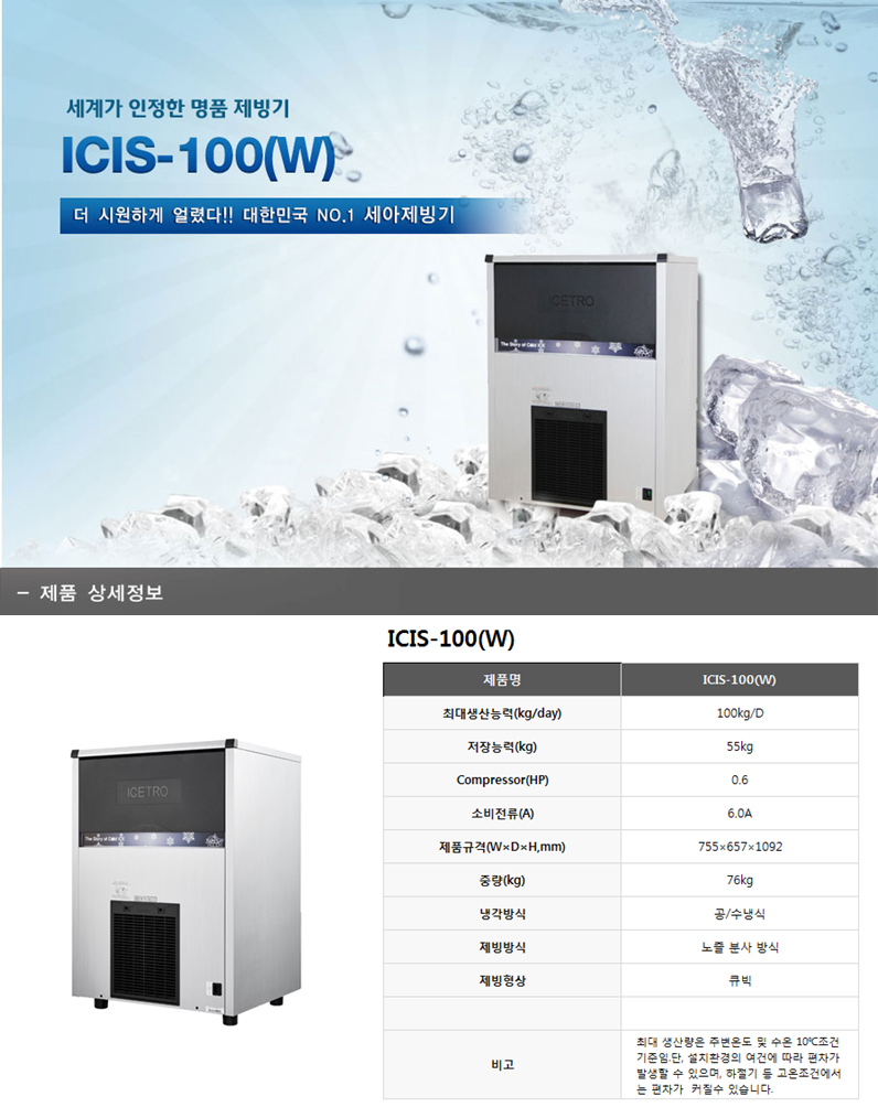 대형 제빙기 [세아/ ICI-100W/ (수냉식)]