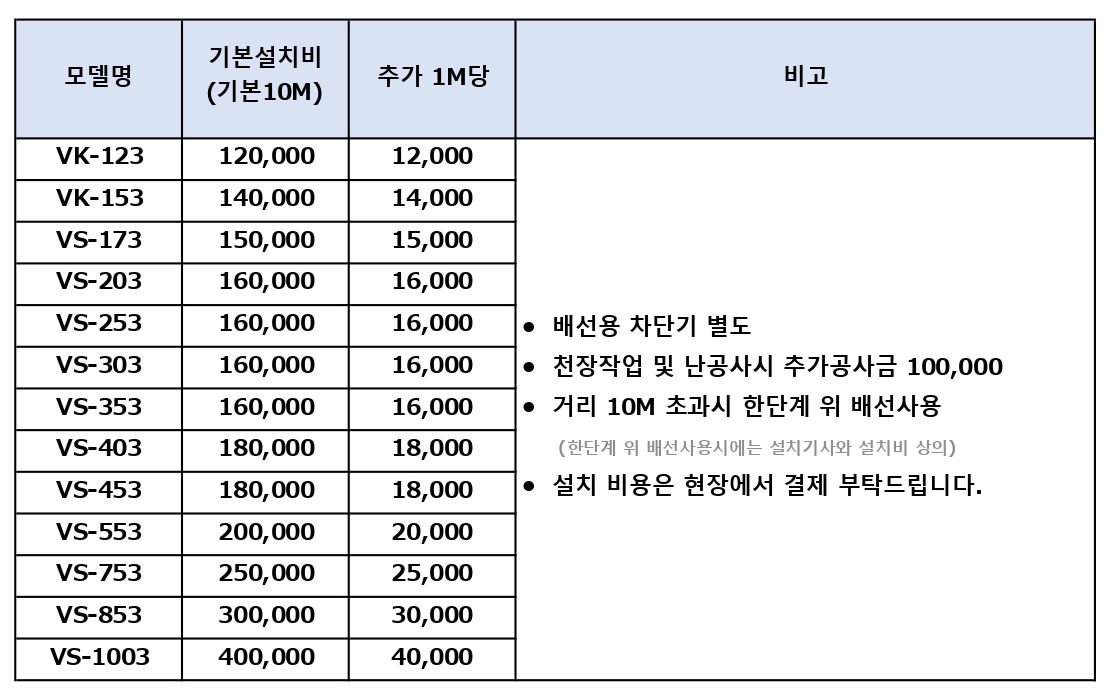 ·기본설치 : 120,000원(전선10m포함)